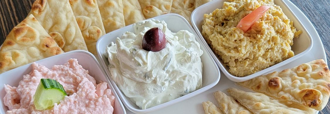 A combination of Taramosalata, Hummus, and Tzatziki served with hot pita bread.