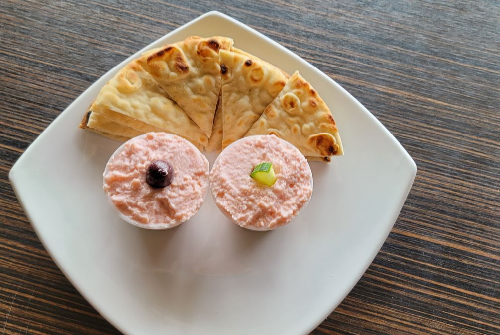 Red Caviar whipped with olive oil and lemon juice, served with hot pita bread.
