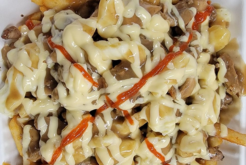 Royal chicken shawarma served on poutine with our signature garlic sauce.