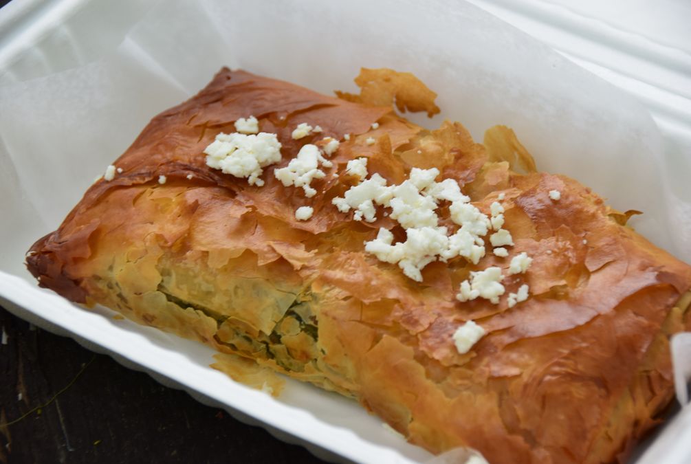 Fine layers of filo pastry filled with spinach and feta cheese.